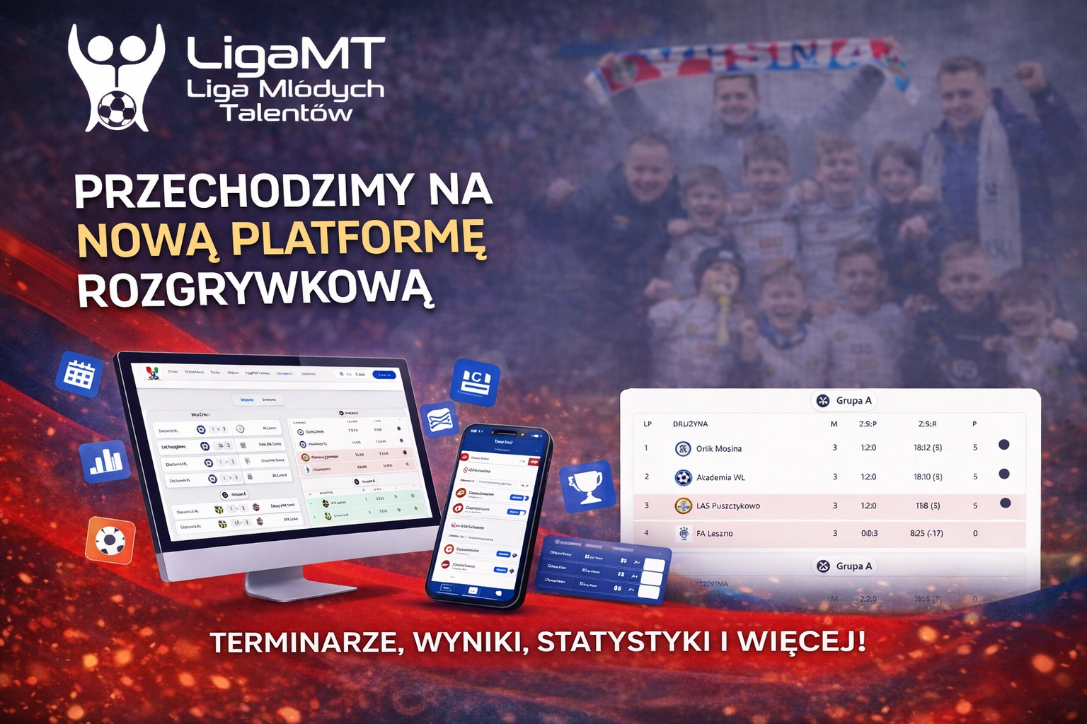 Rozpoczęliśmy zapisy do wiosennej edycji Ligi Młodych Talentów 2026 – jednych z największych i najbardziej dynamicznie rozwijających się rozgrywek piłkarskich dla dzieci w Polsce. W nadchodzącej edycji ponownie spotkamy się aż w 13 lokalizacjach, gdzie setki drużyn będą rywalizować, rozwijać swoje umiejętności i przeżywać prawdziwe sportowe emocje.